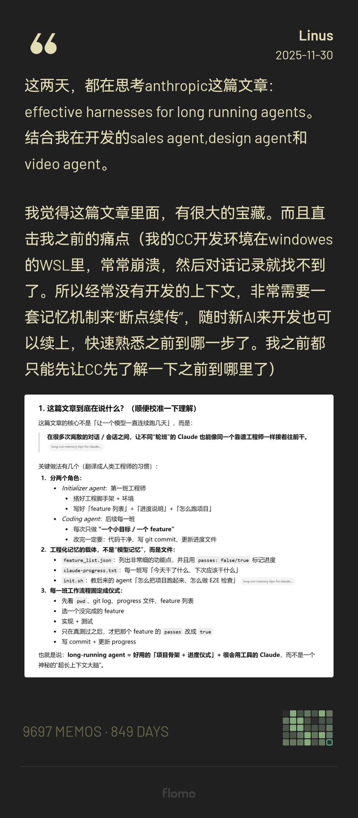 加一个前两天出的长程跨对话的工程记忆机制: effective-harnesses-for-long-running-agents //