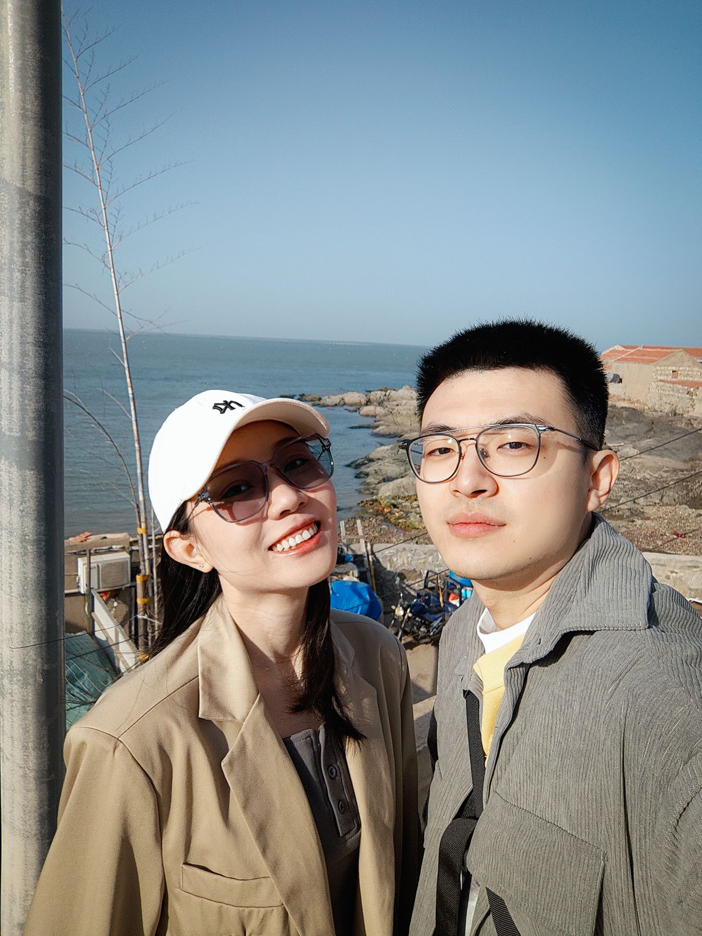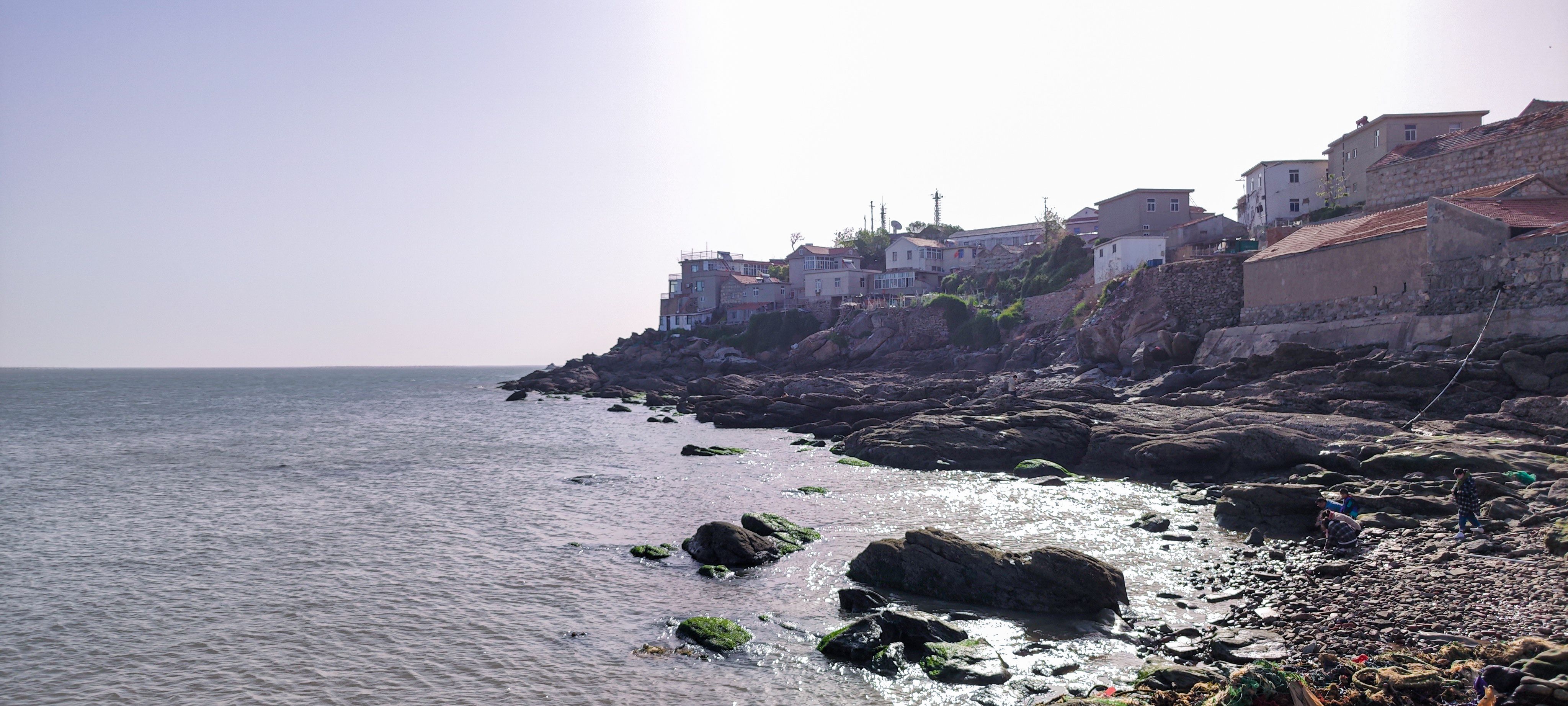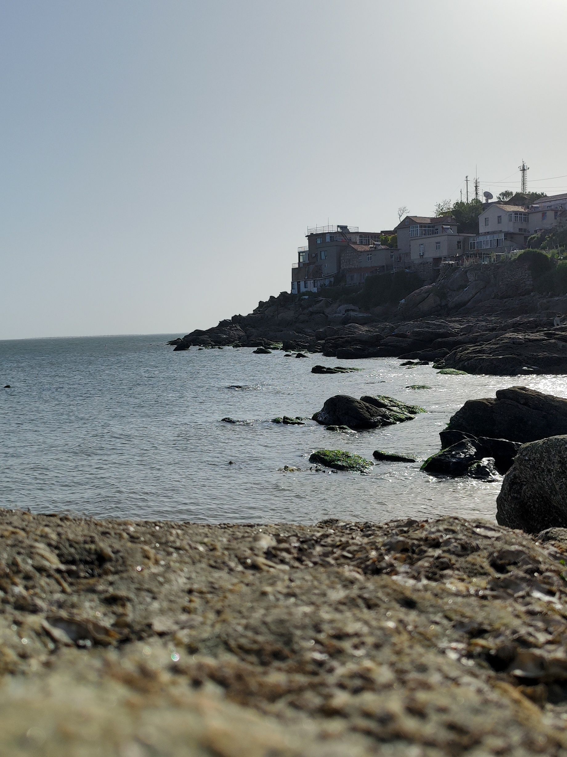 眼睛注视着灰白交接的地平线