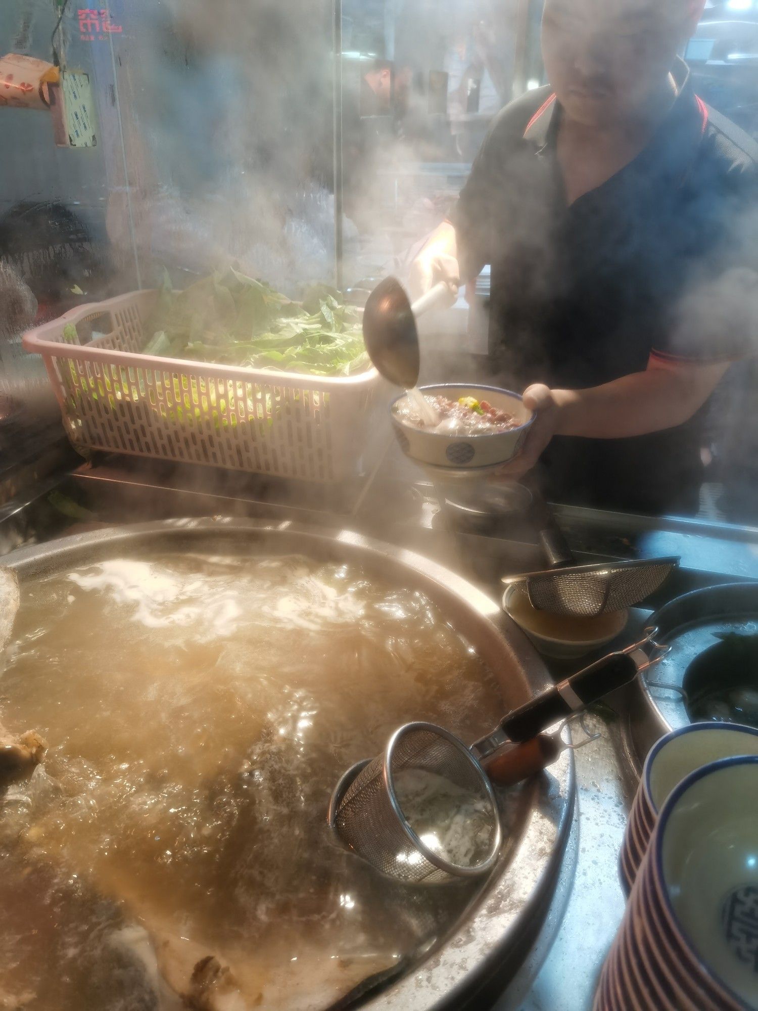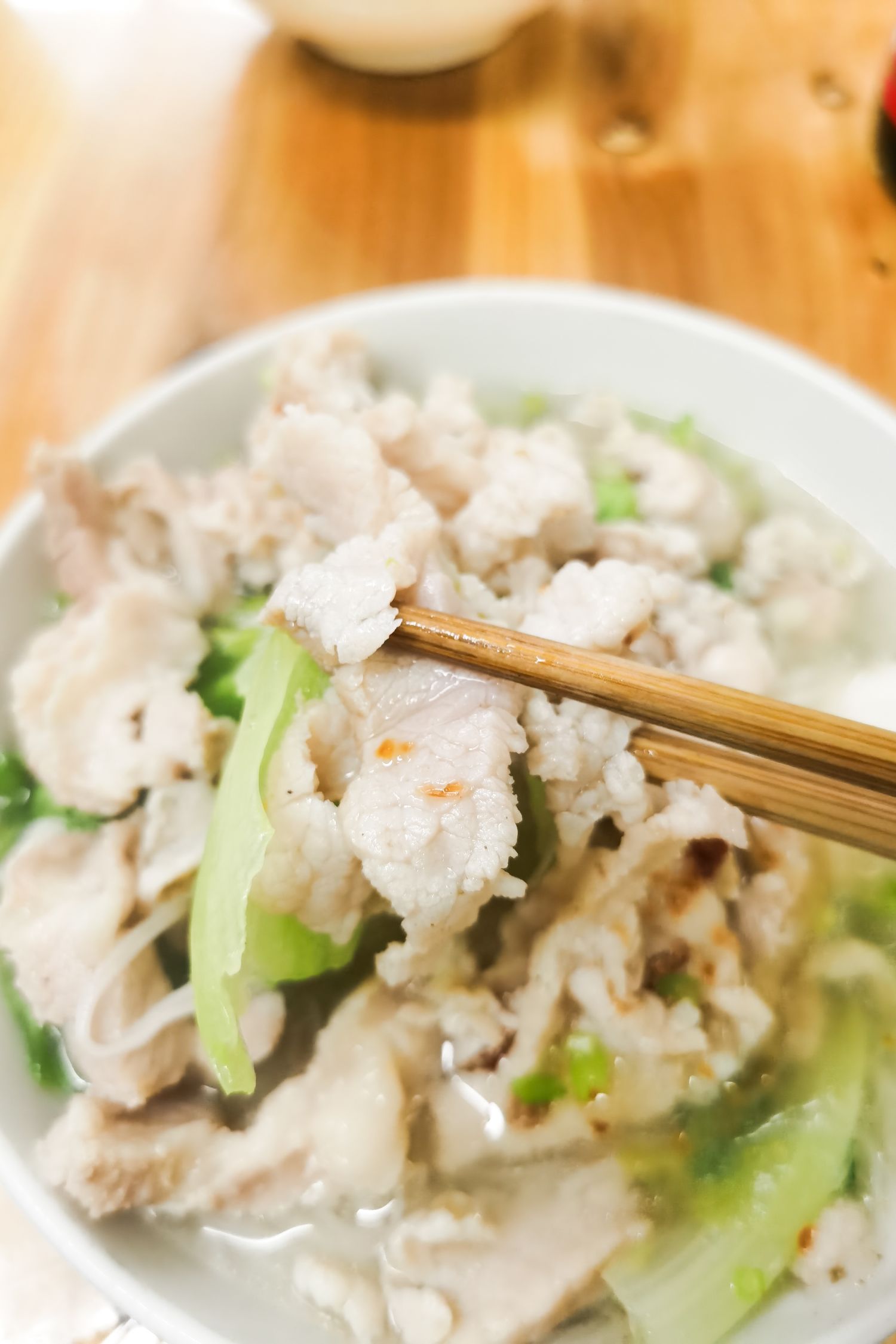 不一会就上来三碗白净的猪肉汤粉,肉质松软不粘牙汤汁清淡又鲜甜。
