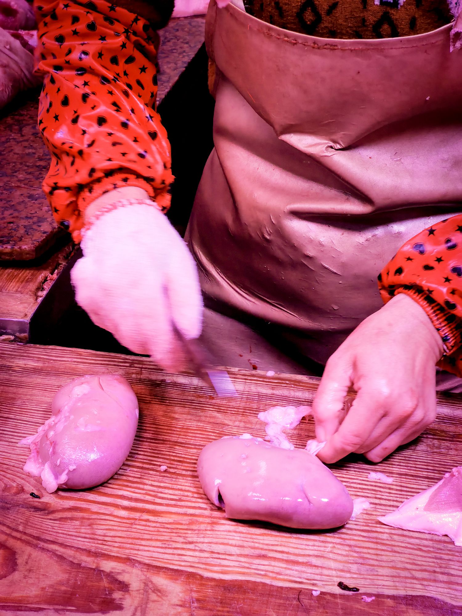 昨夜凌晨找市场猪肉佬切了个温热肾子去隔壁粿条面加料,面摊老板拿着竹签汤烫着面顺手熟练的拿走我左手的肾子处理起来。