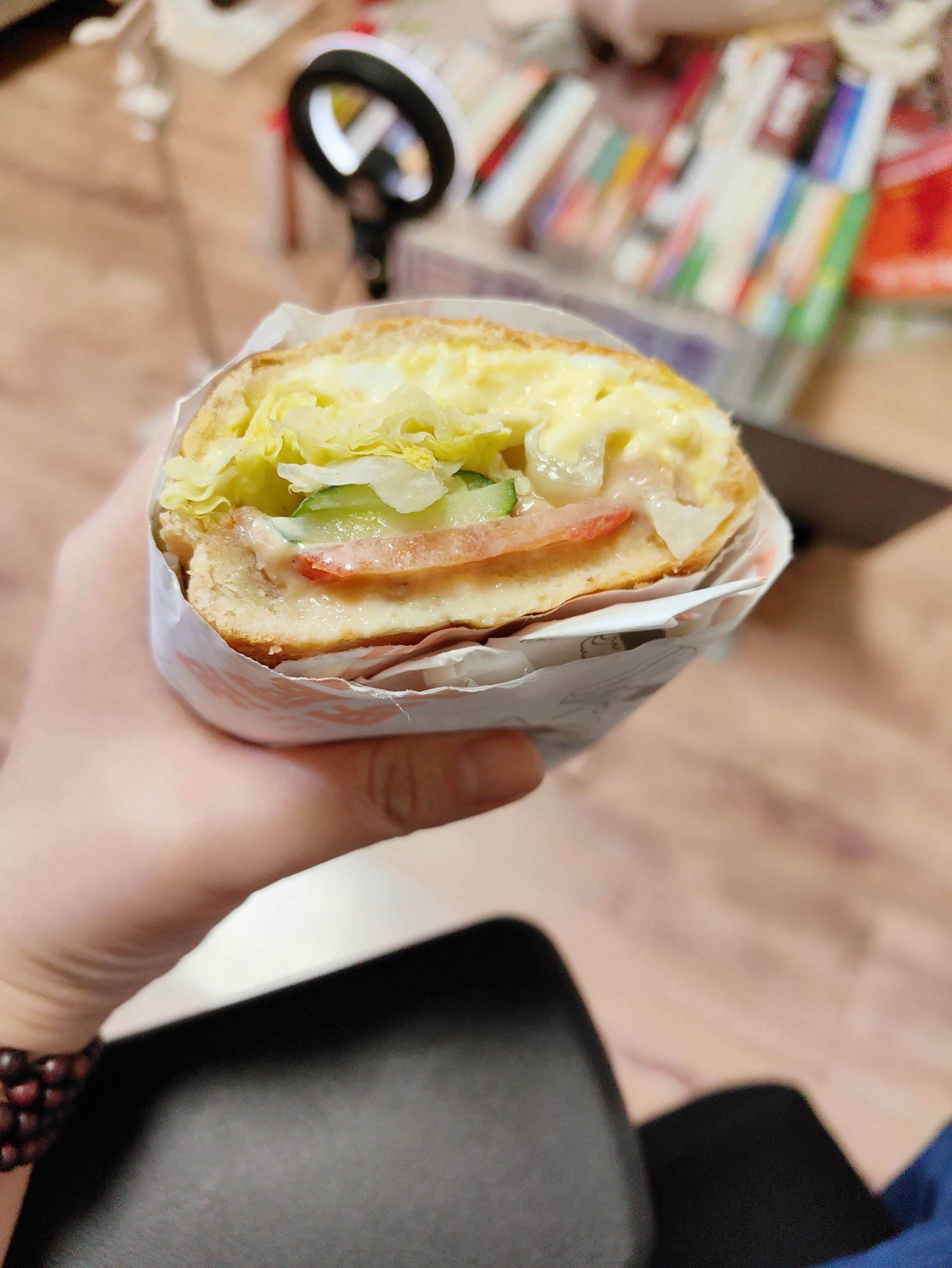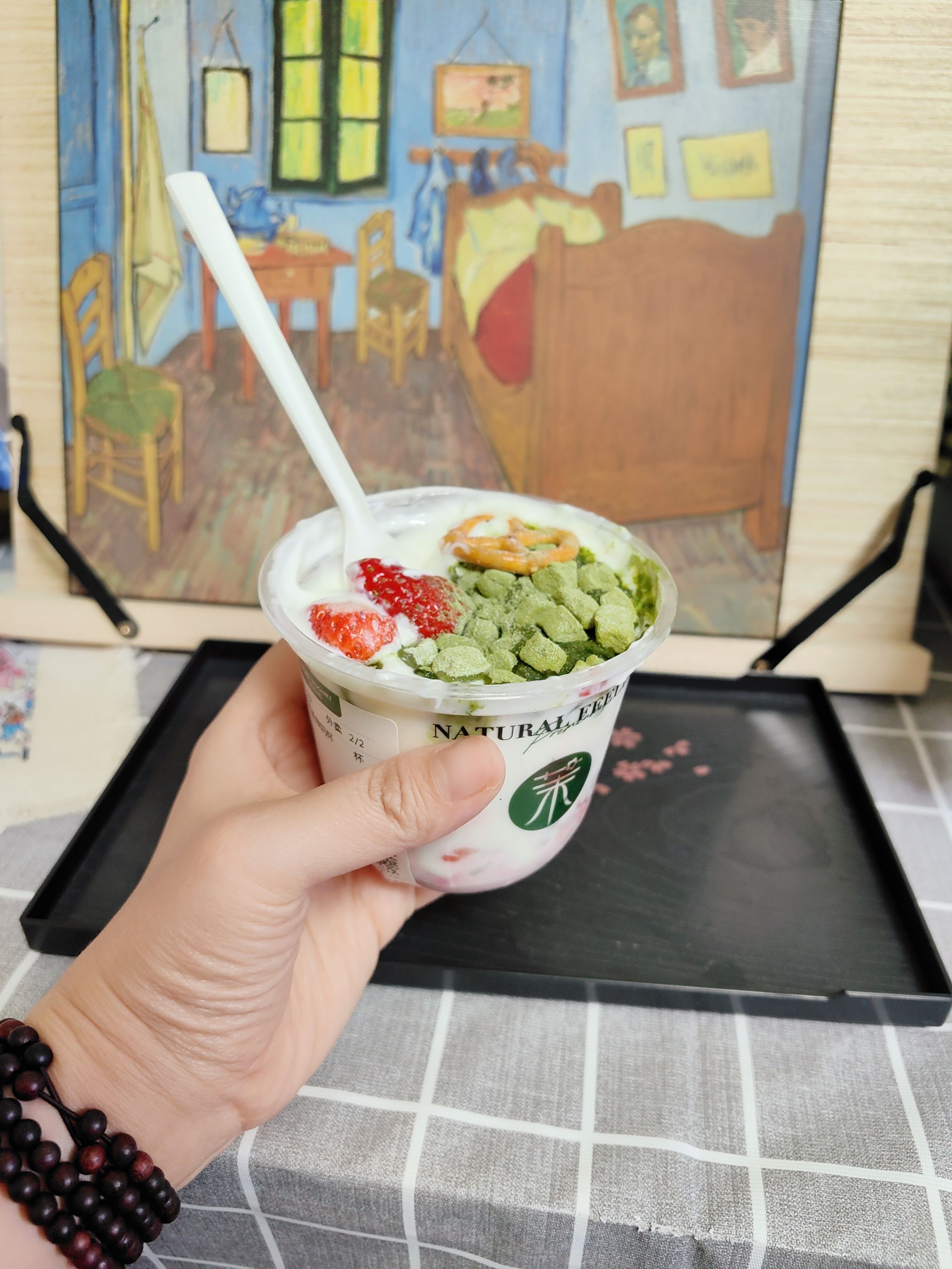 去给朋友送了礼物,对心轮好的葡萄石,吃了特别“丰富”的酸奶➕三明治