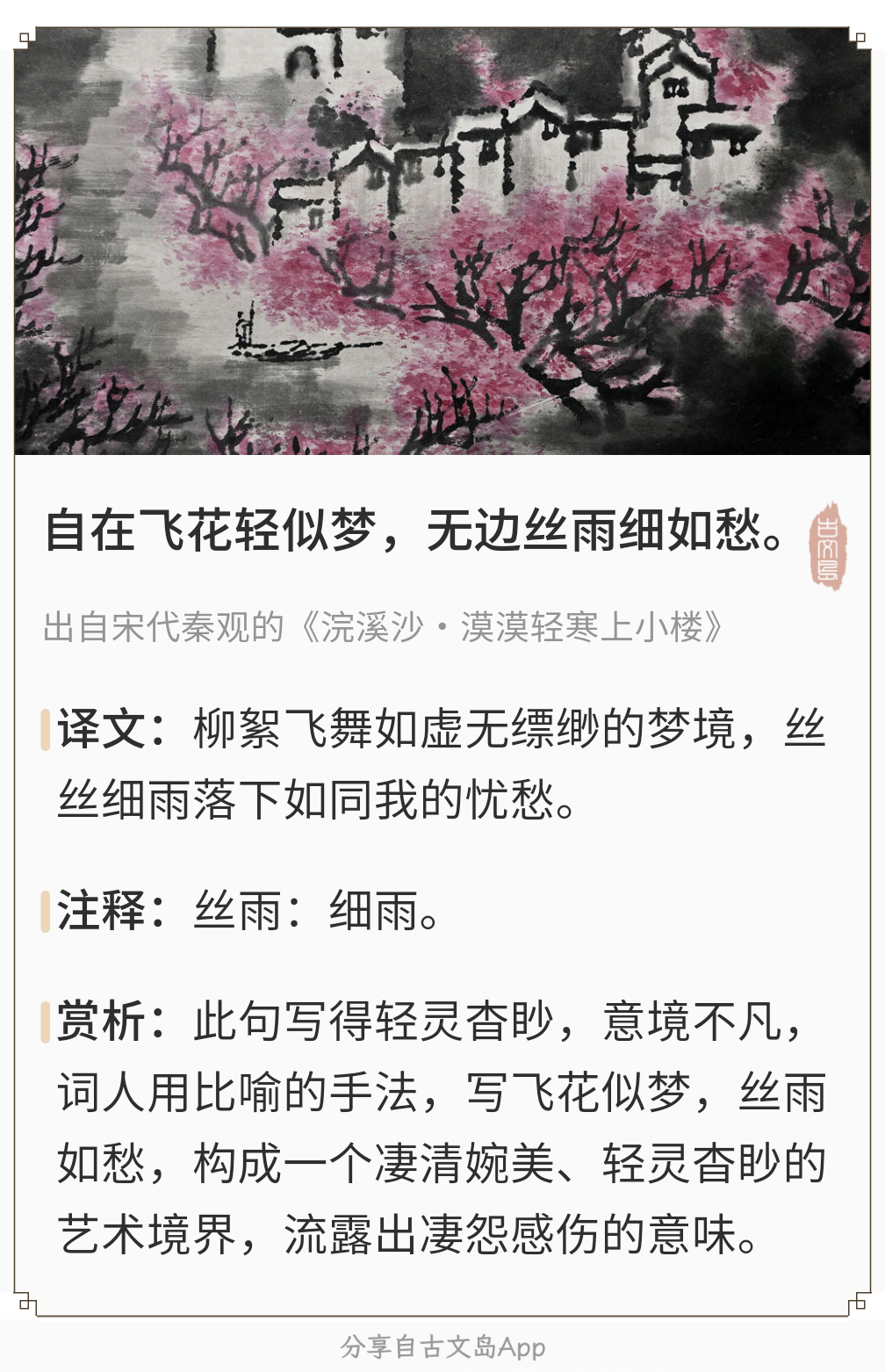 自在飞花轻似梦,无边丝雨细如愁。