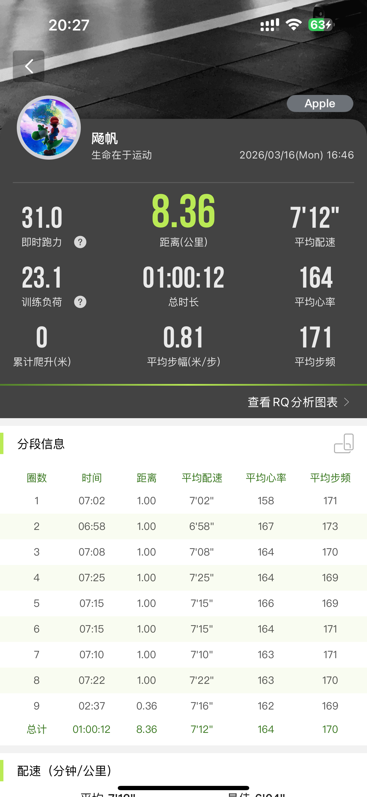 1.跑步满1000公里;