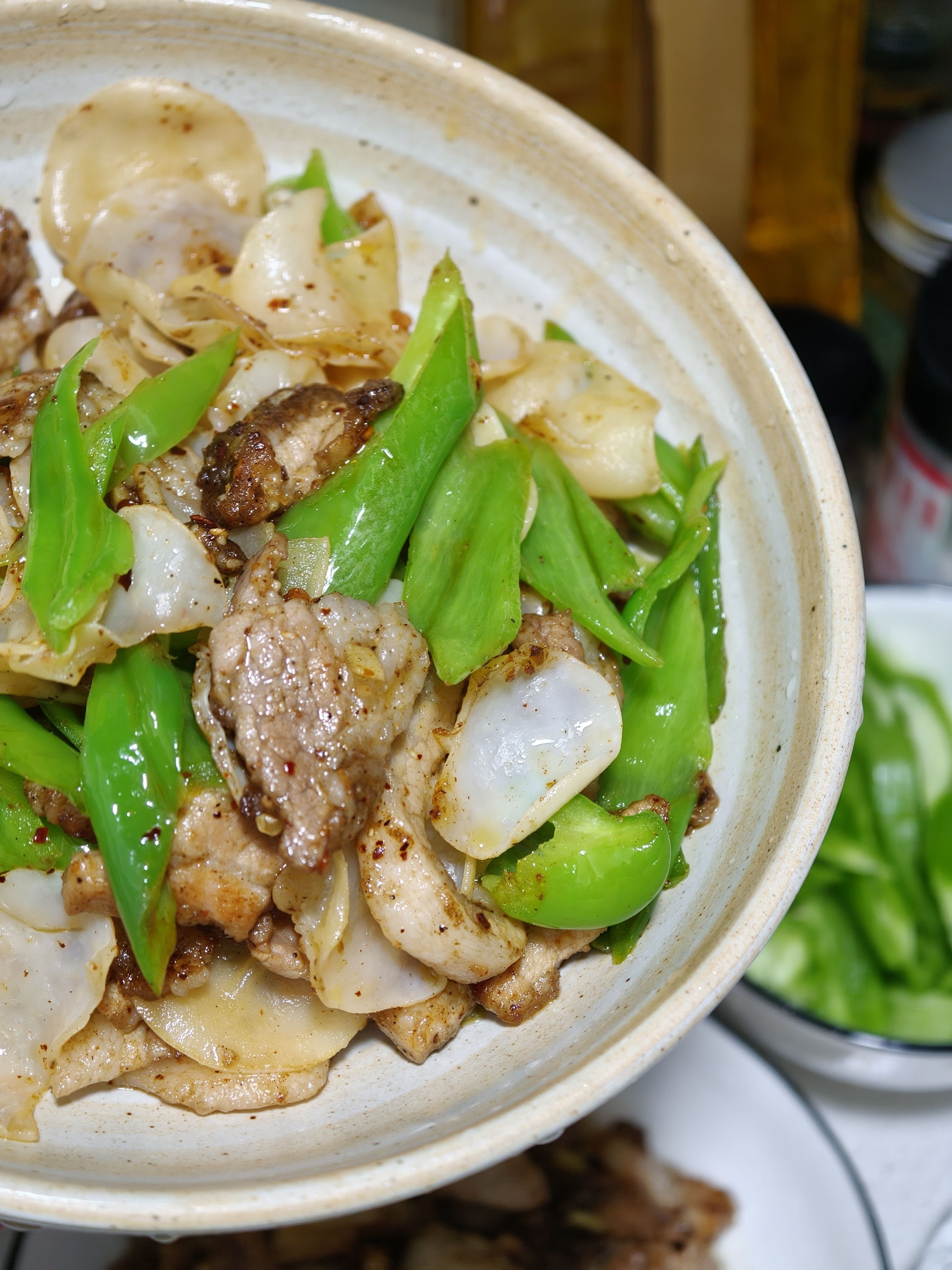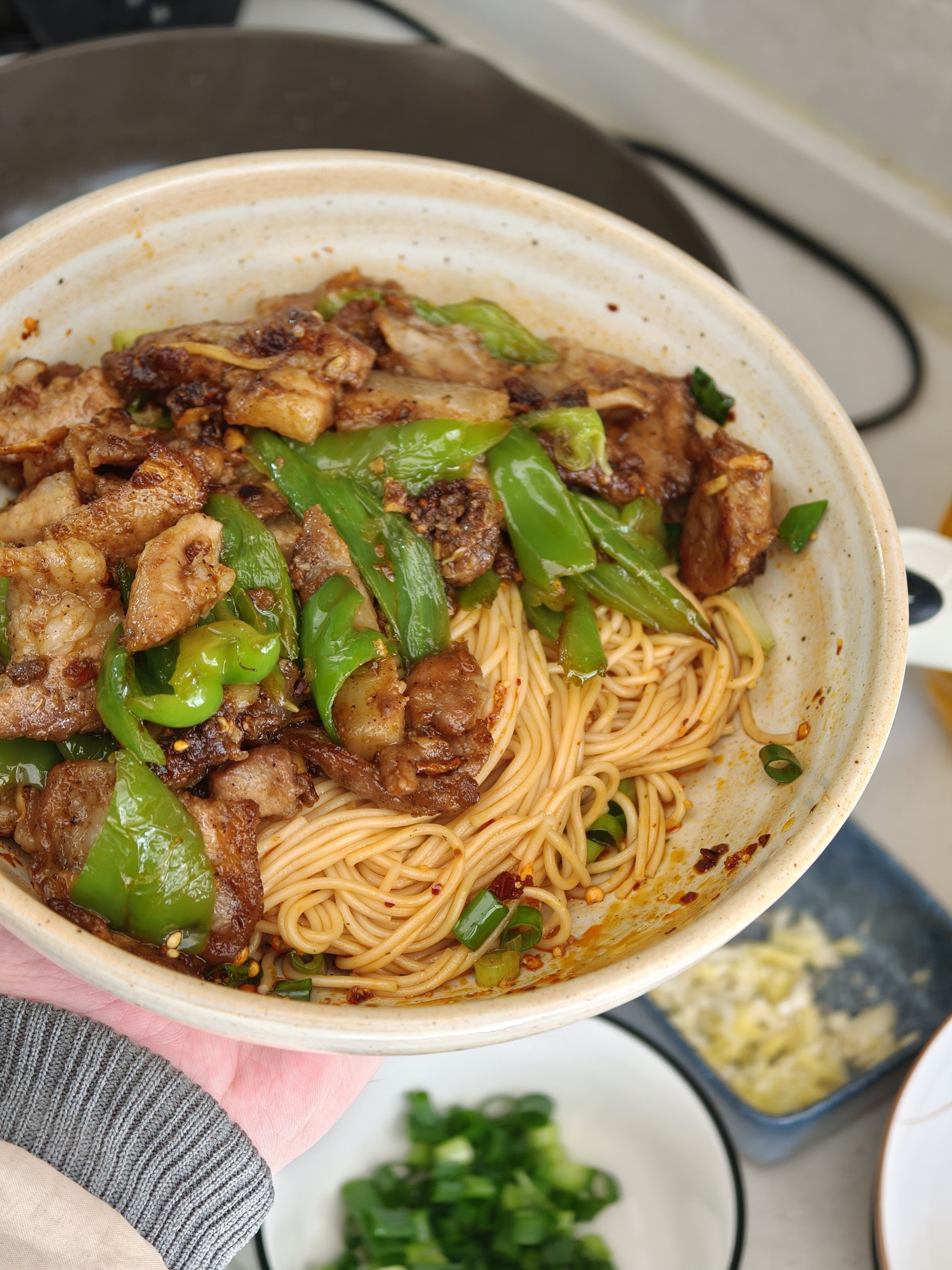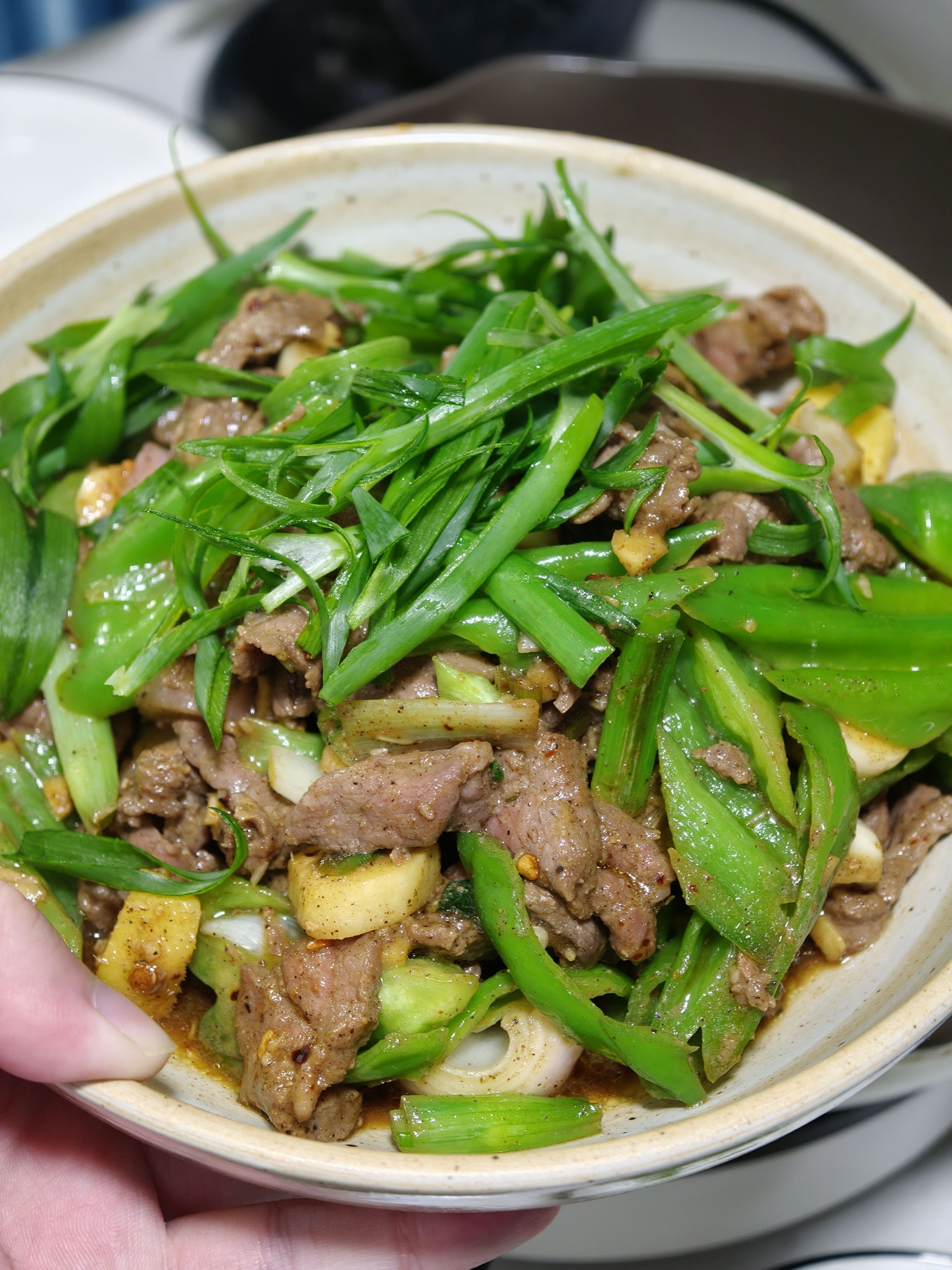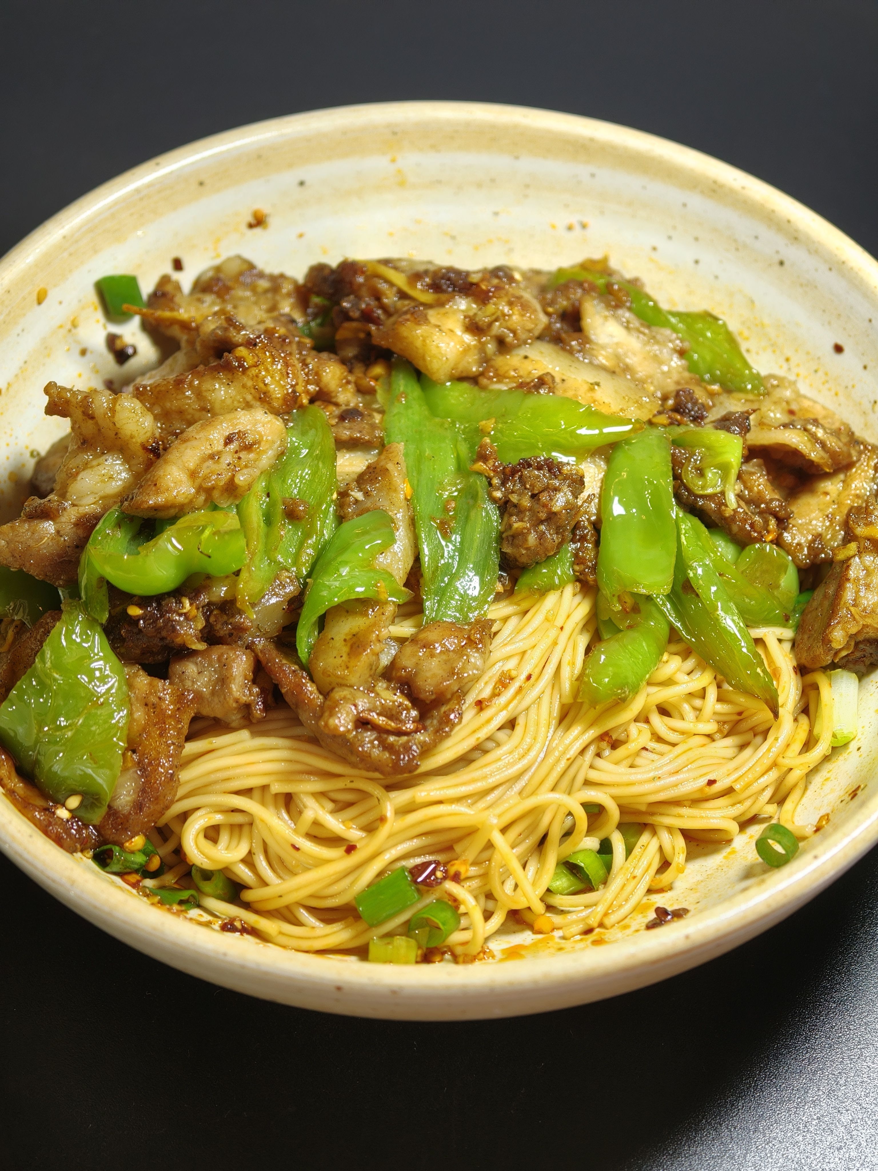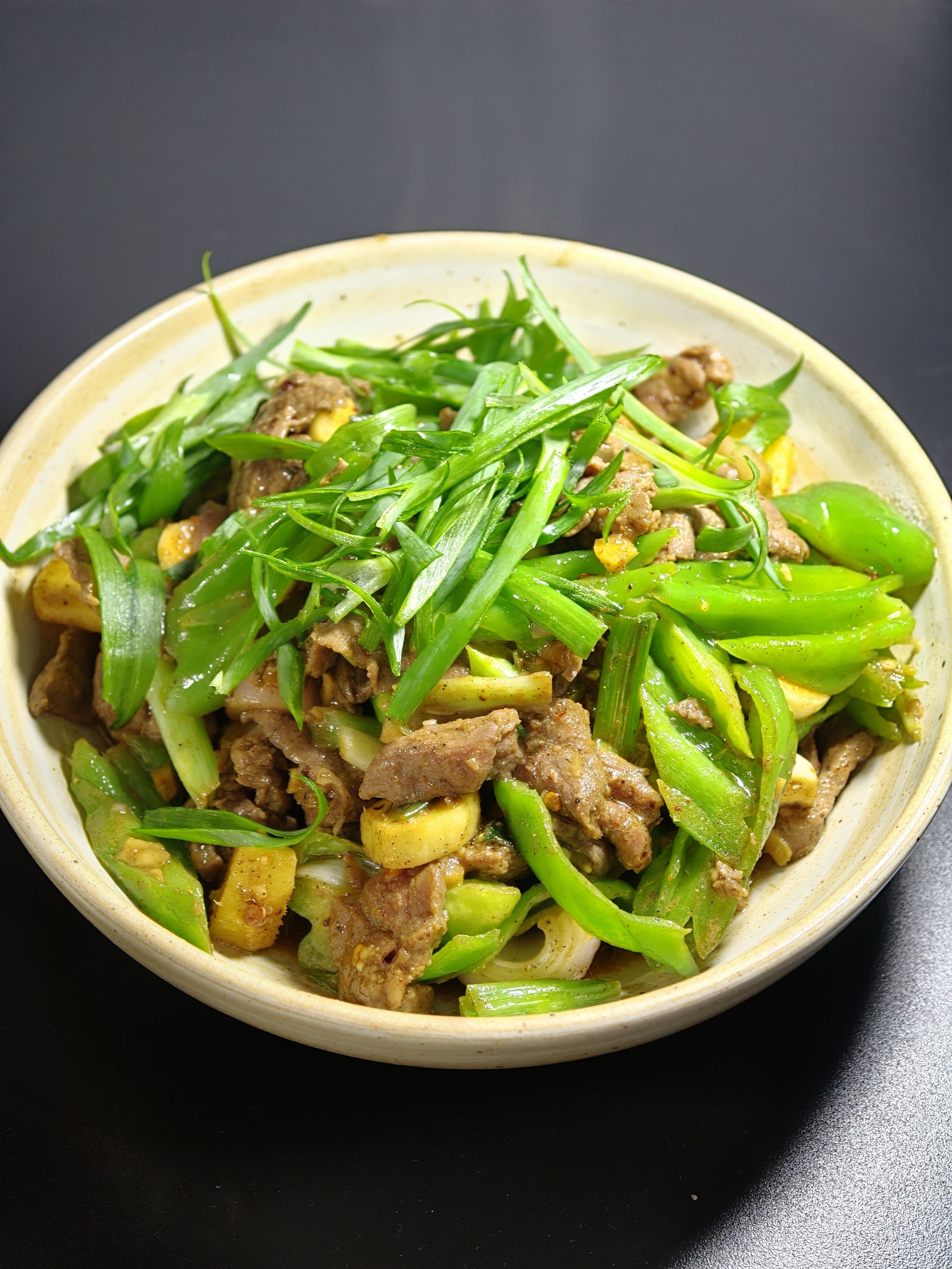 这周清库存,就着青椒,小葱,猪肉牛肉做了 4 餐🤣,今天吃青椒炒肉拌面和双椒牛肉