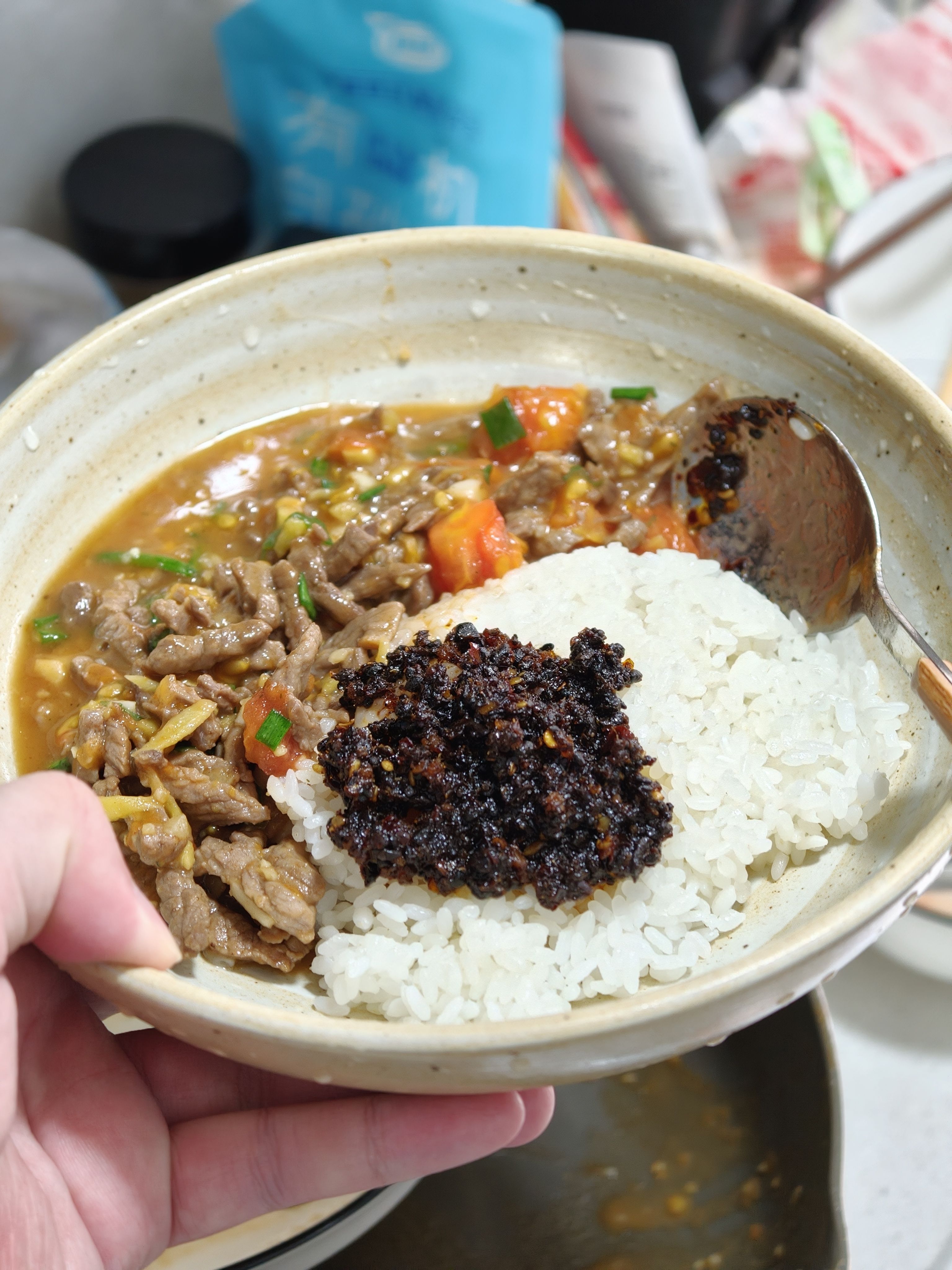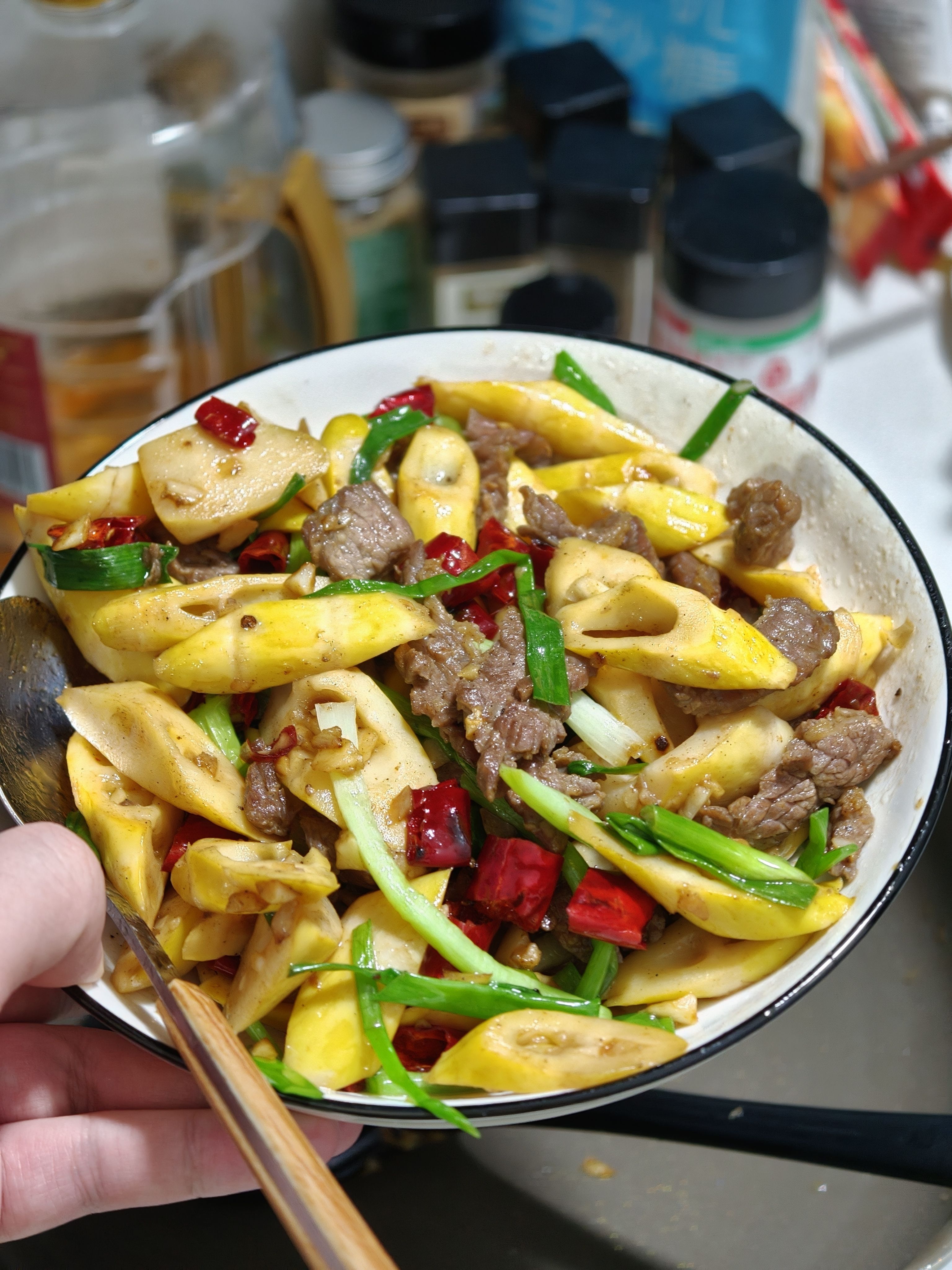 黄瓜炒牛肉+酸笋炒牛肉+芝士土豆焗牛肉+草莓雪碧,也是牛牛牛了🤣