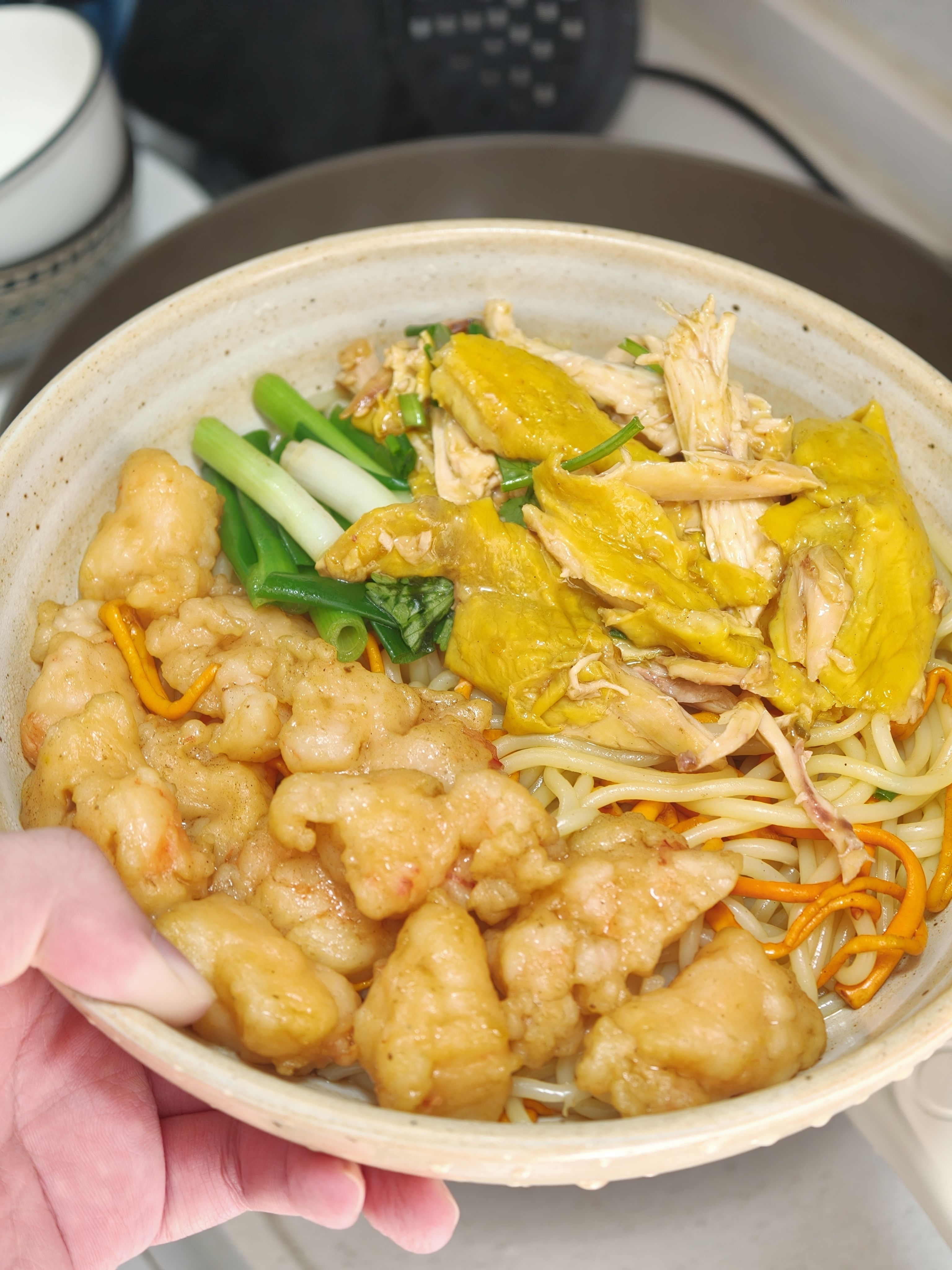 椒麻手撕鸡米线🍜,要过年了清冰箱库存,有什么煮什么了🤣