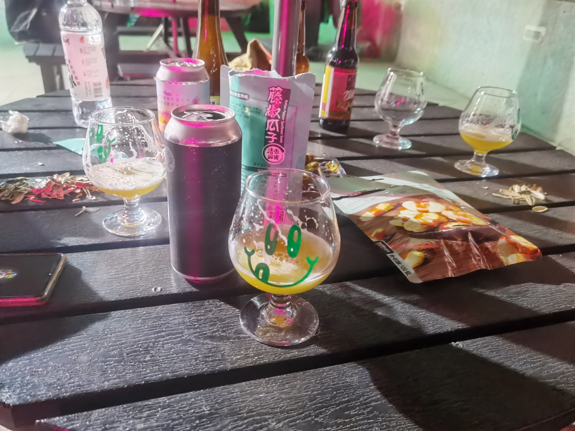 气泡实验室爪哇部落的魔法浆果真的是很好喝,定义是古斯但是酸度可以说是完全感受不到,整个就一浓郁的莓味儿,身边的女性朋友都赞不绝口,小甜水儿整点这个确实是很不错。还剩半瓶南城火箭砰砰古斯,大家说太酸了,剩半瓶留回来我自己解决了,古斯的风格我也不是很爱,爱酸的人就爱古斯和果泥,我爱酒花的涩感和世涛的浓郁,浅尝一下,确实是酸的沁人心脾,这味道留在脑海里,看着酒体就让人直流唾沫,喝完我直接吃了一碗面,助餐酒。