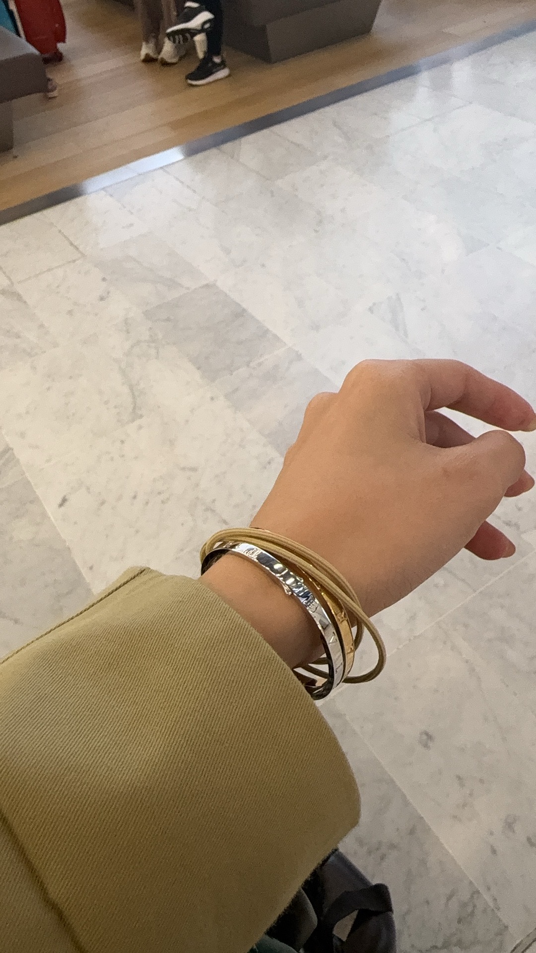 在宝格丽店里试镯子和项链,逛完出来了店员也没给卸下来,我玩了会手机发现不对劲仔细一看居然没给卸下来,太chill了咱老法还是