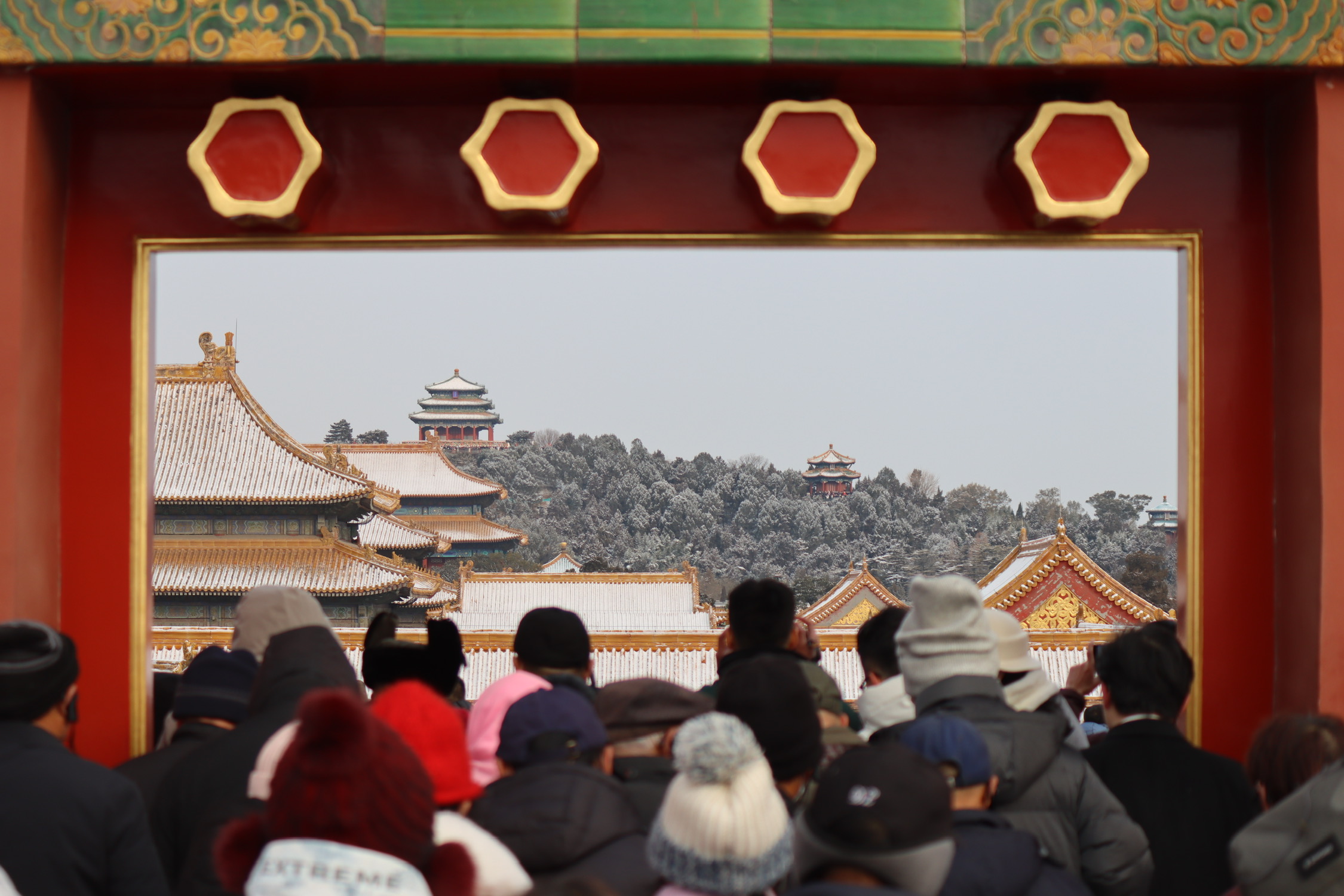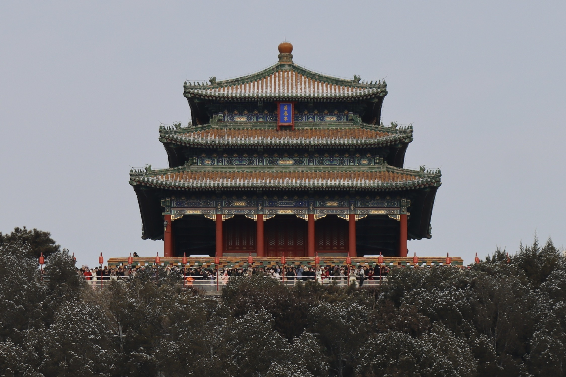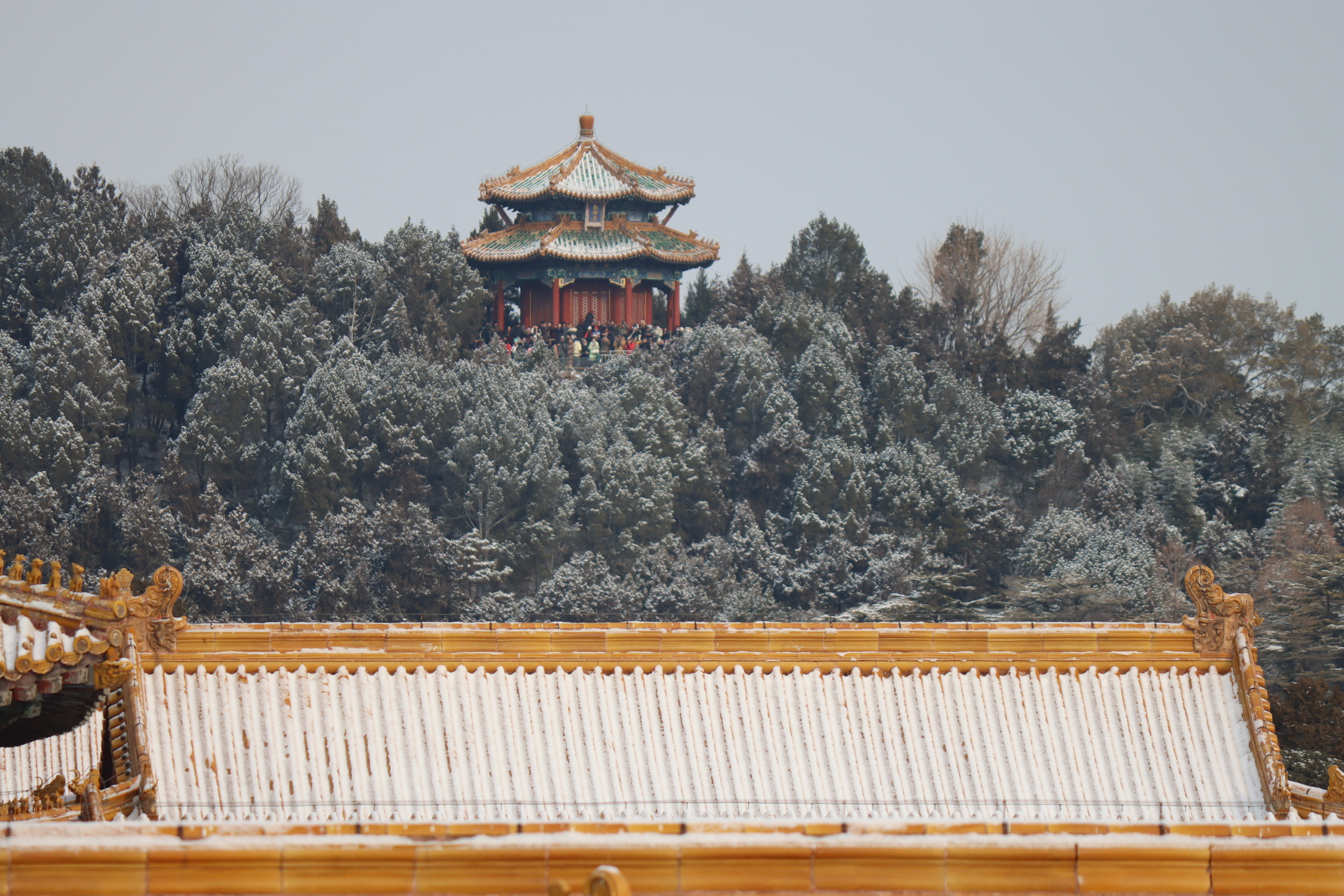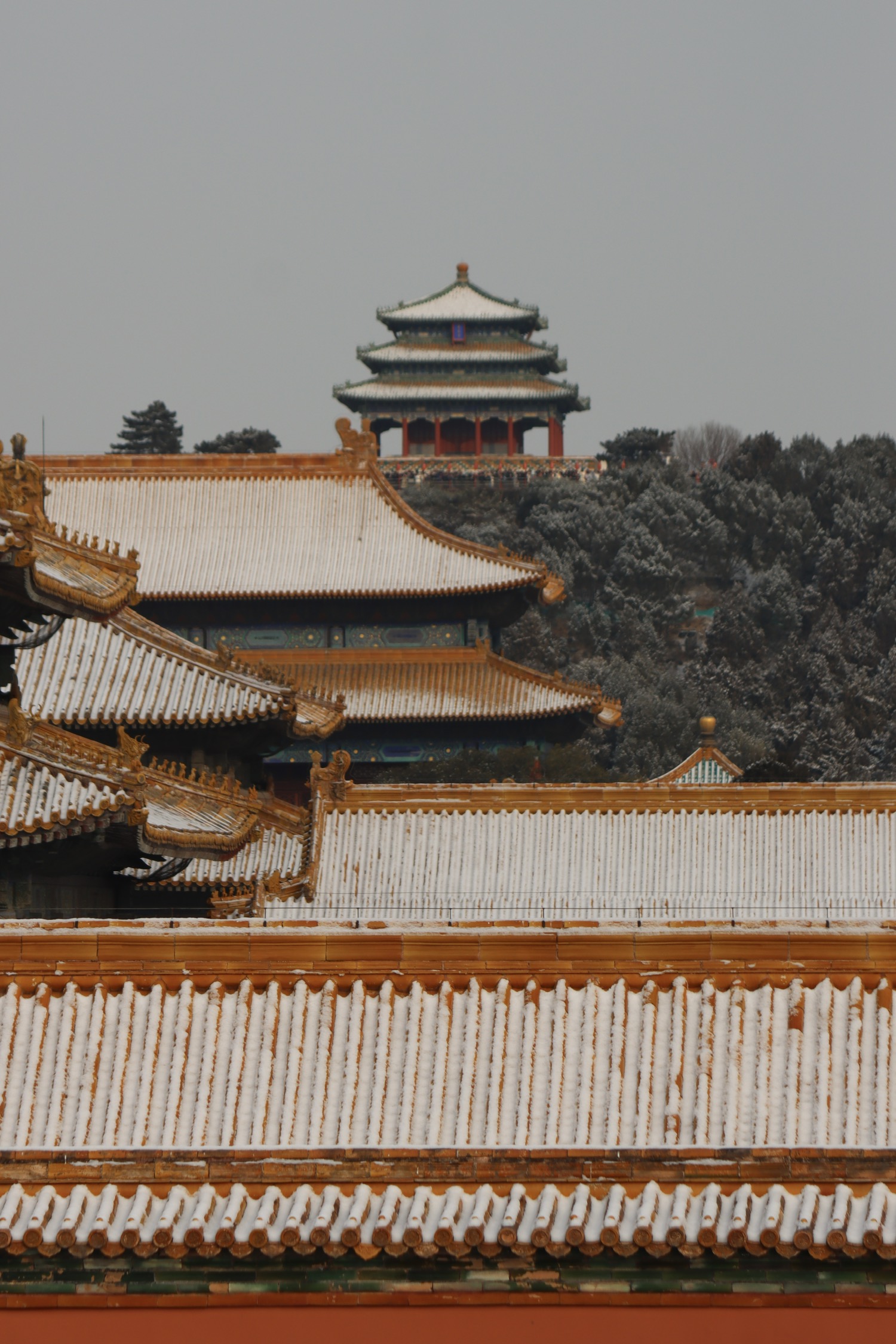 站故宫看景山的万春亭、观妙亭。