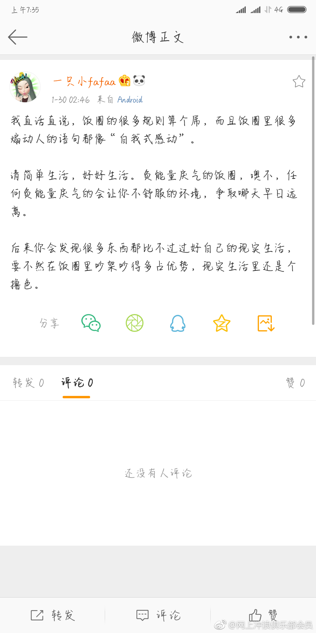 远离饭圈?呵,真好笑,除非不追星,有人的地方就有圈子,有圈子的地方就争议,这本身就无法避免。当然了....过好自己的现实生活是对的