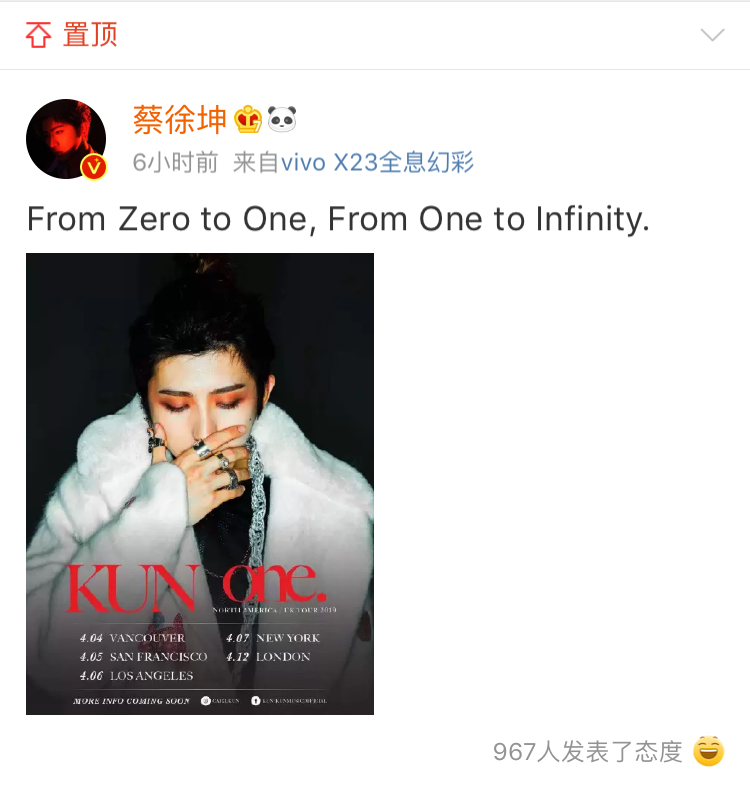 你就是无穷,你就是我的宇宙。预祝你海外公演顺利,不知道有没有打算去公演的ikun?如果有机会,我也希望陪你环游你的音乐星球 🌍